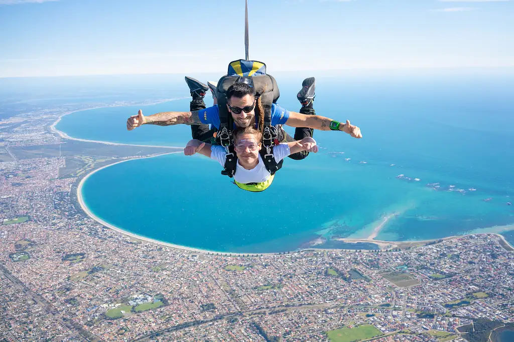 Take in Western Australia's vivid blue skies and iridescent seas on a 15,000ft tandem skydive that's guaranteed to thrill
